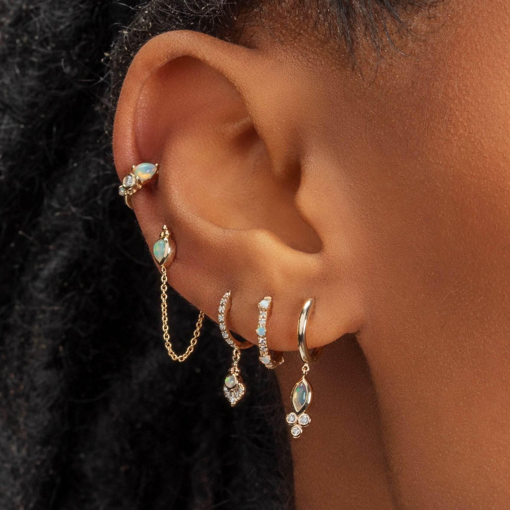 Our 14K gold earrings with huggie style is a classic trend. These gorgeous earrings are crafted with genuine Opal Stone. Ideal for present or collection.